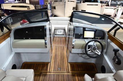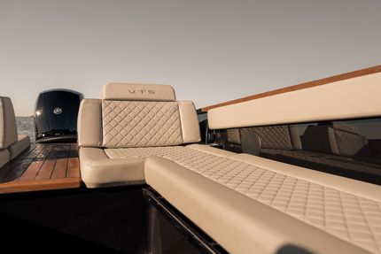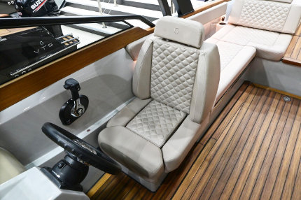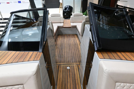 Das sorgfältig gestaltete Cockpit bietet Komfort für 8-10 Personen, während die geräumige Kabine (Classic) mit einem großen Doppelbett, zahlreichen Stauräumen, einem Audiosystem, Beleuchtung und einer versteckten Toilette (Classic & Bowrider) komfortable Bedingungen für Übernachtungen bietet. Dank des eleganten Decksfensters wird die Kabine tagsüber mit natürlichem Licht beleuchtet.